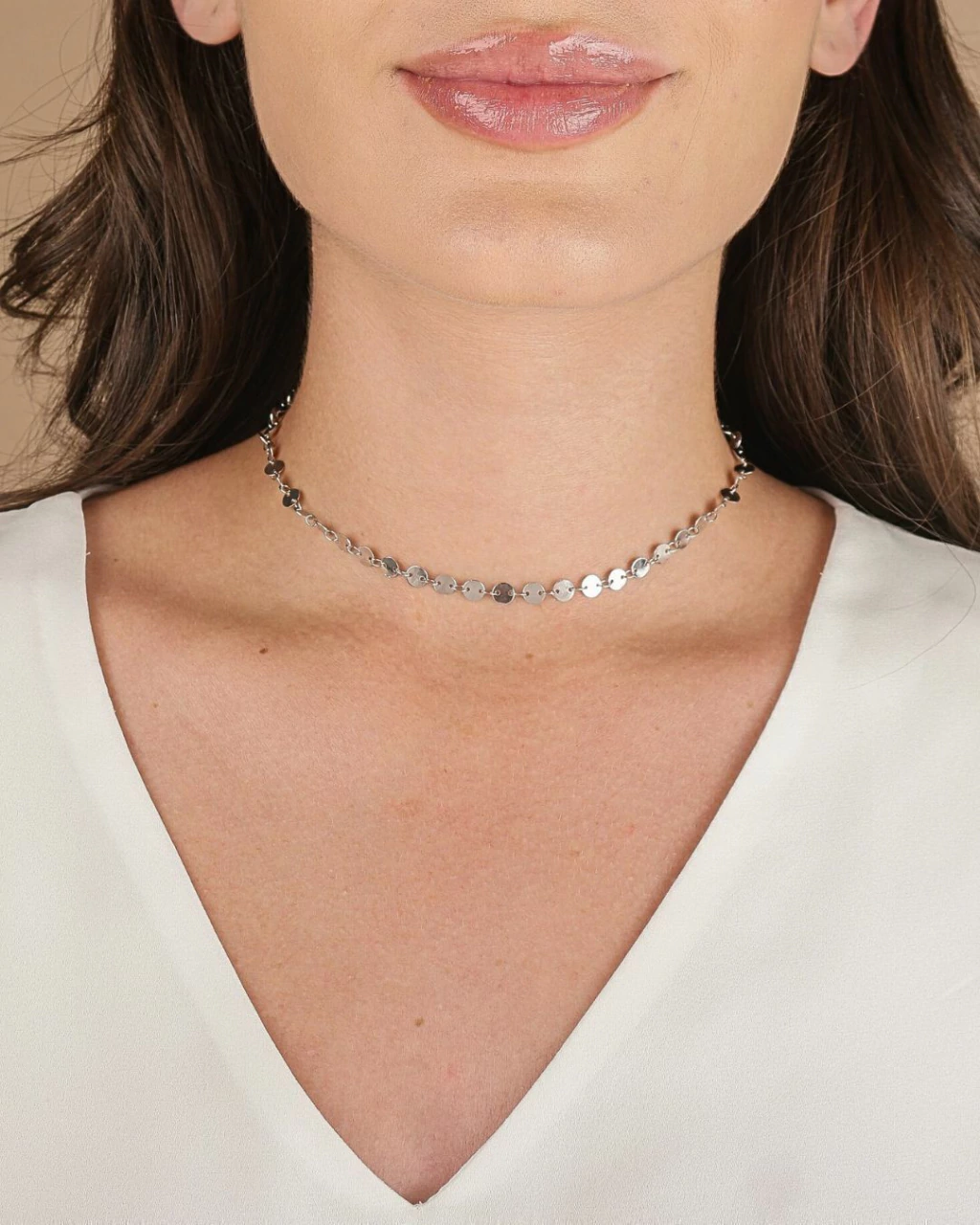Choker Medalhas Lisas - Prateado - Banho de Ródio