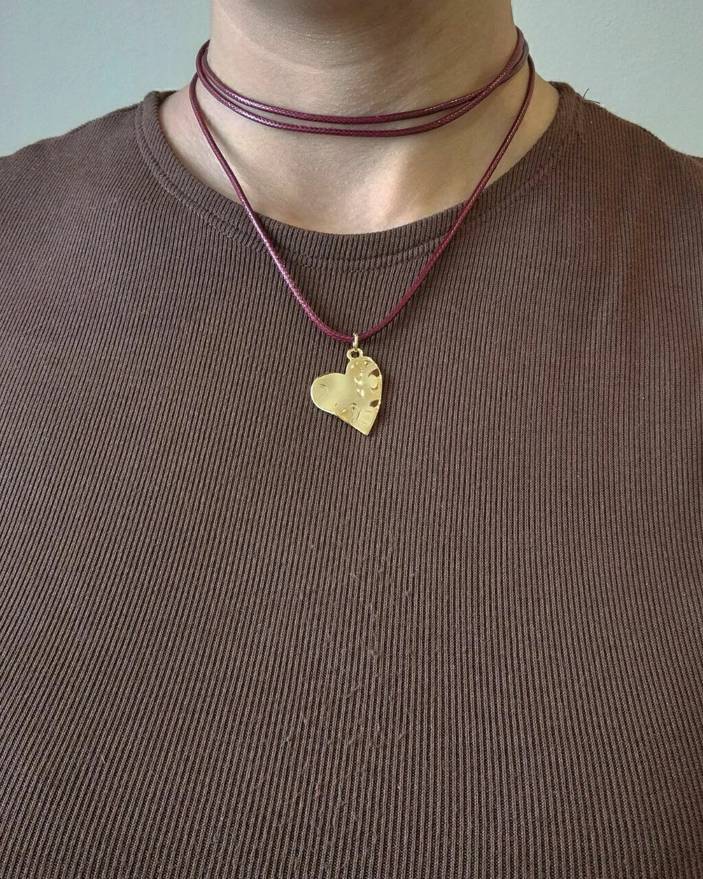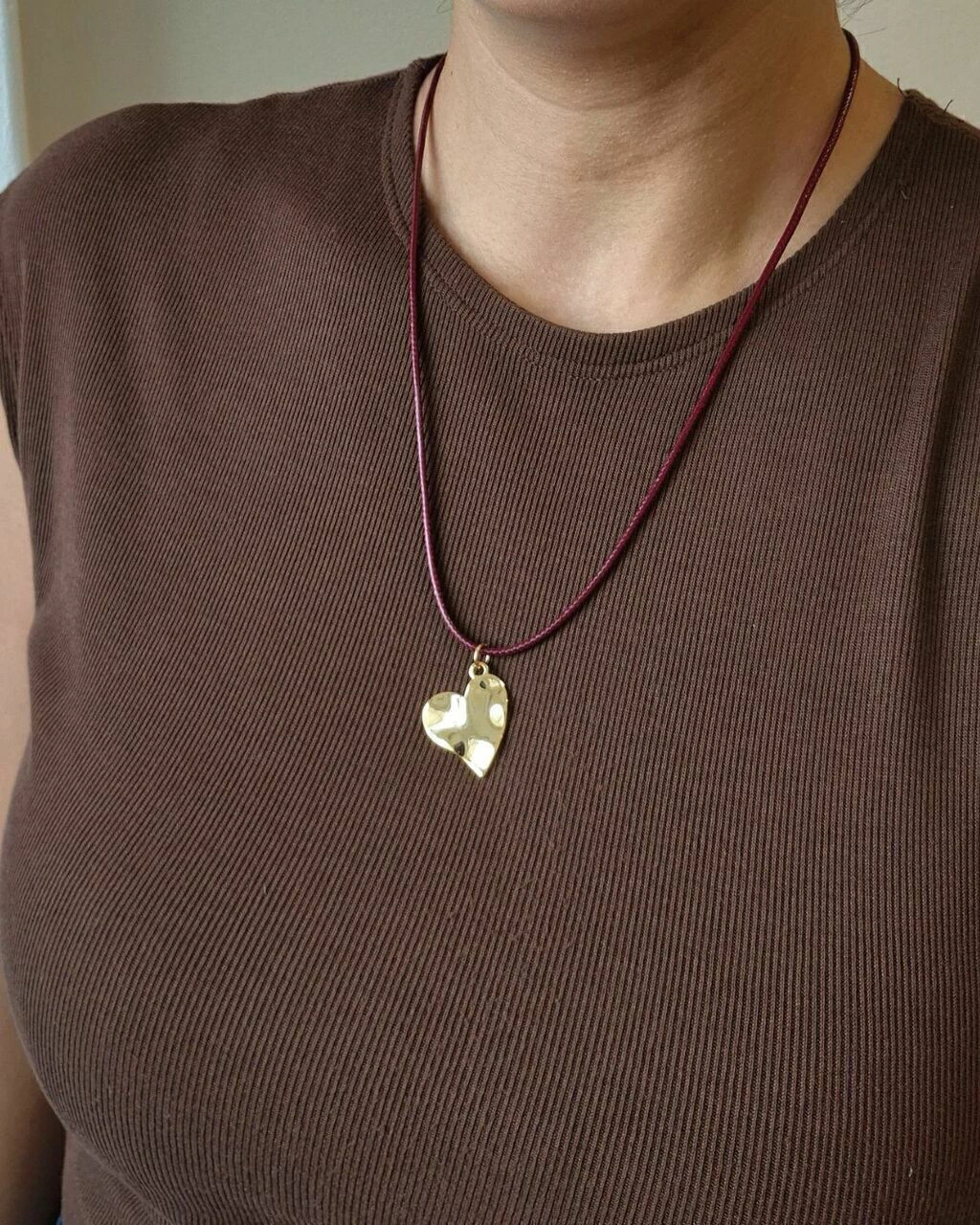 Colar Pingente Coração Orgânico - Dourado - Couro Cores Diversas