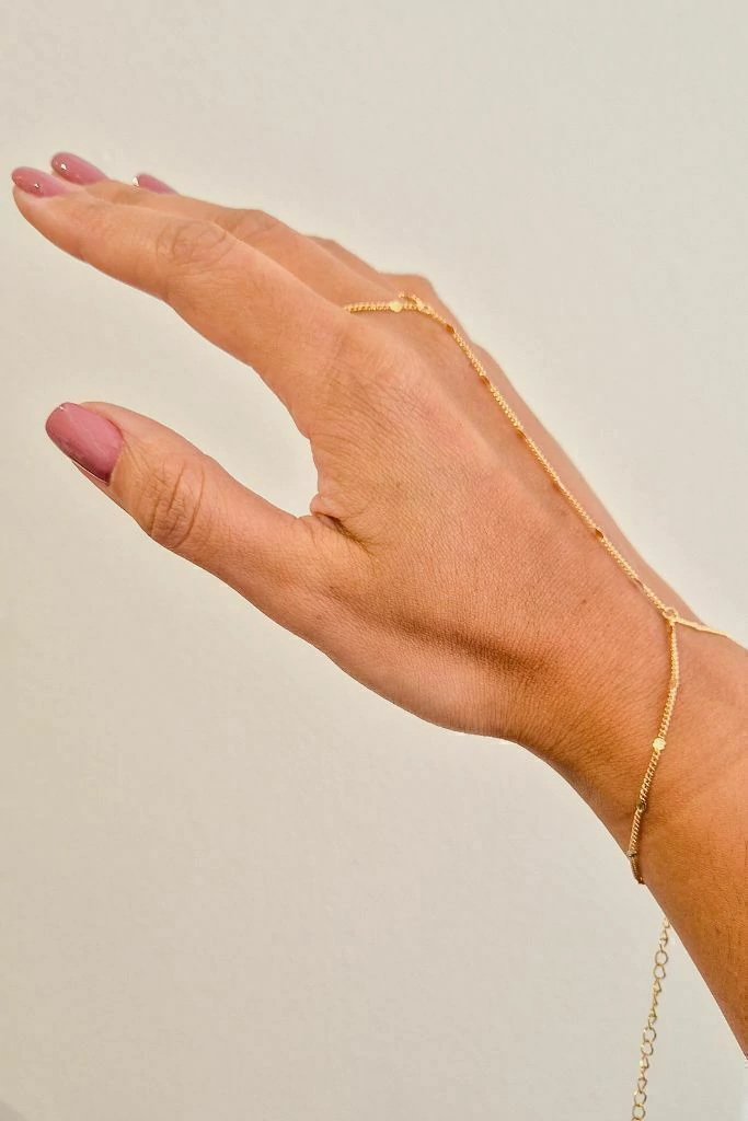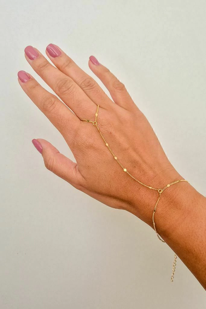 Dimensões: Corrente do anel até pulseira - 12 cm / Pulseira - 15 cm + 5 cm de extensor