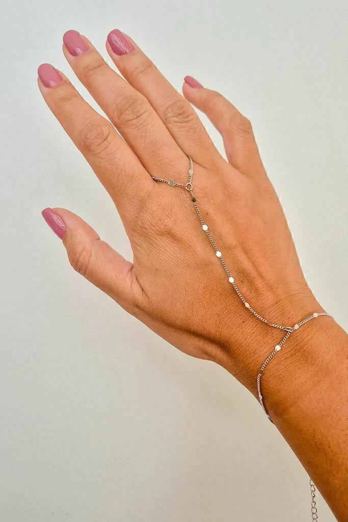 Dimensões: Corrente do anel até pulseira - 12 cm / Pulseira - 15 cm + 5 cm de extensor