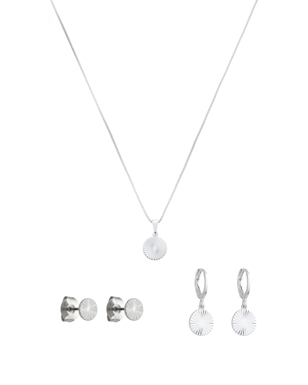 O Kit Sunny é composto por todos os itens da linha Sunny: Argola Sunny e Brinco Fixo Sunny e Colar Medalha Sunny.