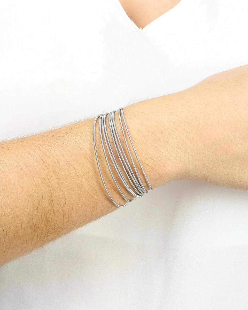 Pulseira Corda de Violão - Prateado - Banhado a Ródio