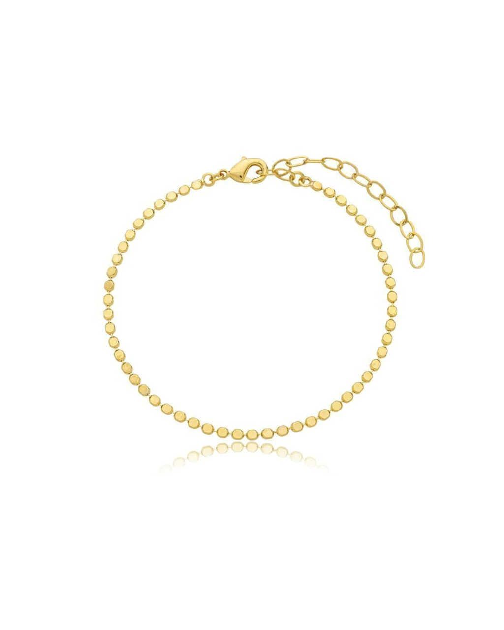 Complete seu estilo com a Pulseira Dots. Composta por uma corrente de mini chapinhas, esta pulseira é um toque moderno e elegante para o seu visual. Adicione um toque de charme aos seus pulsos com esta peça.