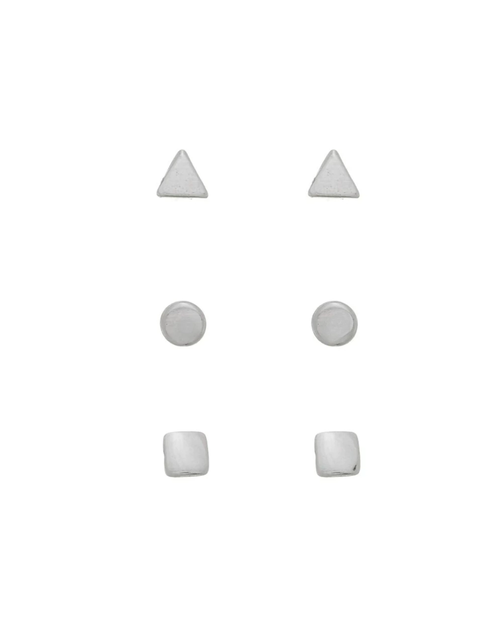 Trio de Brincos Formas Geométricas - Prateado - Banho de Ródio